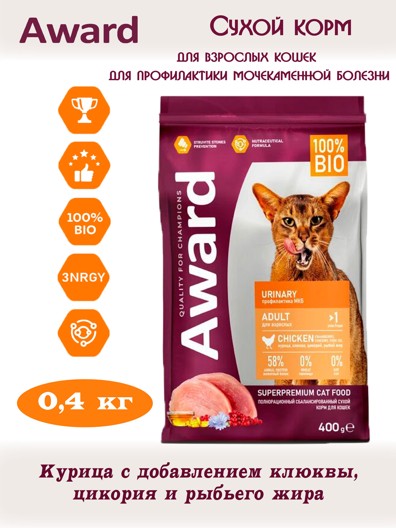 Сухой корм AWARD Urinary в упаковке 400 г — это отличный выбор для заботливых владельцев, стремящихся обеспечить своим кошкам качественное и сбалансированное питание, а также предотвратить проблемы с мочевыводящей системой. Позаботьтесь о здоровье вашей кошки с AWARD!