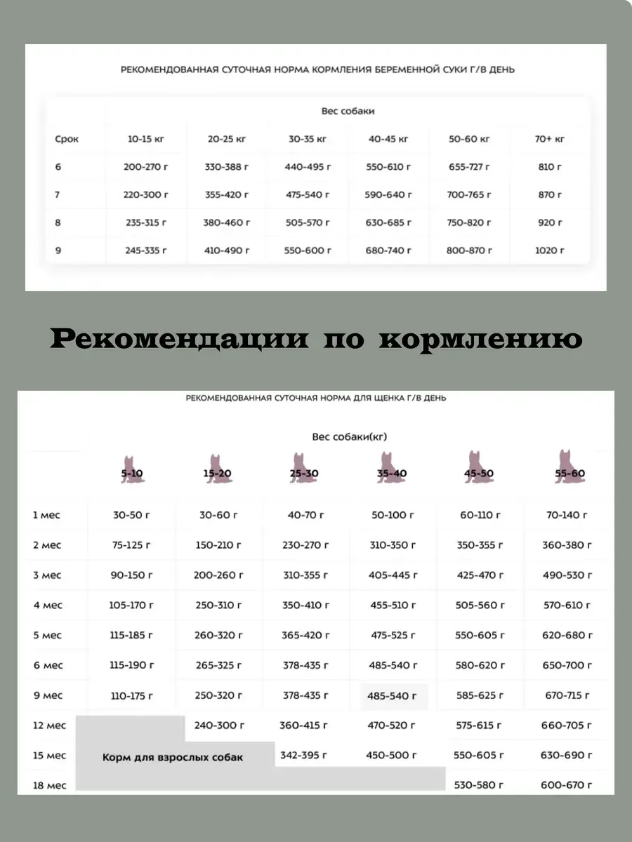 • Следуйте рекомендациям по количеству корма в зависимости от веса и активности вашей собаки.
